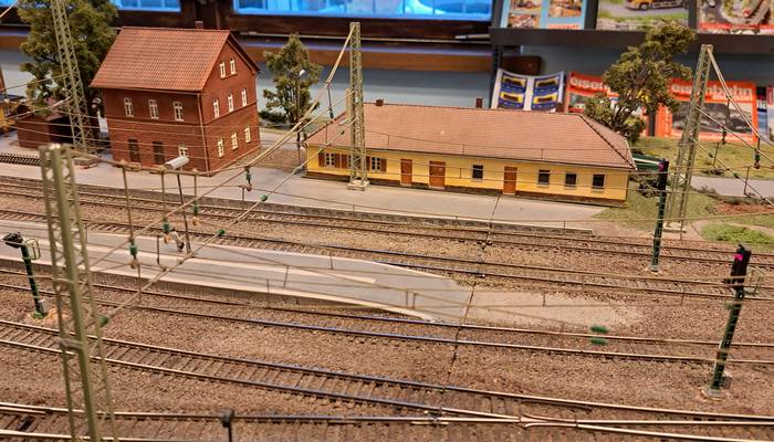 Dass hier mächtig schwere Güterzüge den Bahnhof passieren, kommt nicht von ungefähr. Natürlich will man die herrlich langen Strecken nutzen und Güterzüge in möglichst vorbildgetreuer Länge fahren lassen.