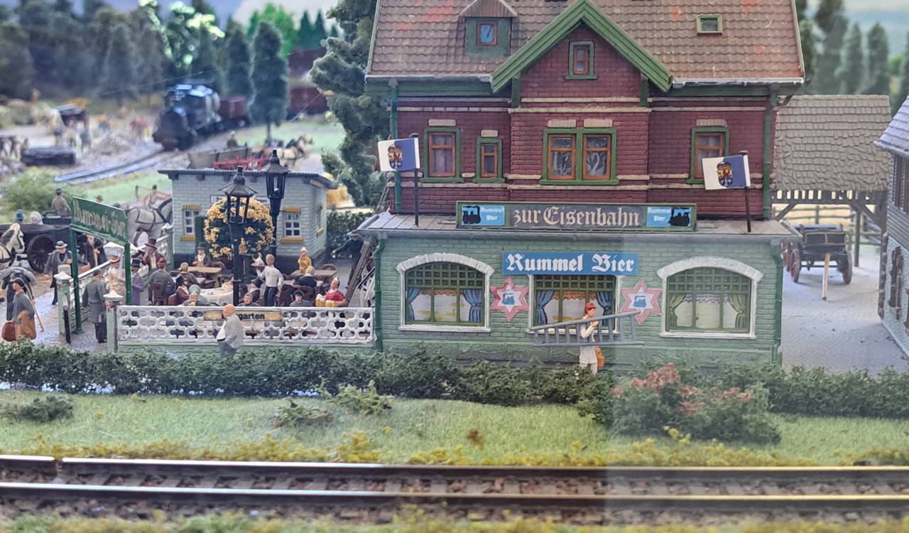 Ich finde, „Ja, man kann!“. Der Bahnhof war vielerorts ein Ort, den man aufsuchte, um diese Stimmung zu riechen, sich im Umfeld des Neuen zu zeigen, von anderen dort wahrgenommen zu werden. Und das ist der „Modellbahnanlage Darmstadt 1846“ sehr wohl gelungen. Die Figuren auf der Anlage drücken es für mich aus. Sehr festlich gibt man sich dort, was kein Alltag war. An den beiden Kopfenden der Modellbahnanlage wird man ein Stück Umland gewahr, das weniger für Festlichkeit sondern mehr für einen bescheidenen Lebensalltag steht. Da sticht der befrackte Besucher im Bahnhof schon deutlich ab.