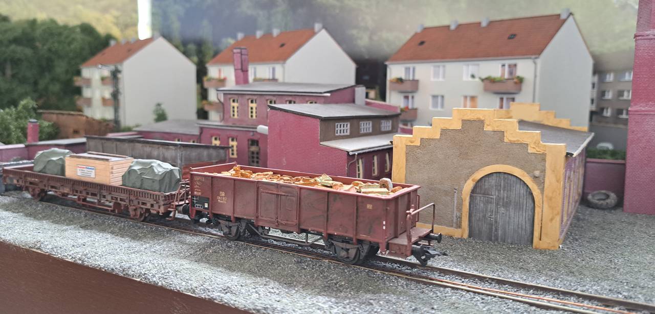 Zieht man hinter dem Gleis eine Mauer hoch, erzielt man eine Abgrenzung vom Hintergrund. Fast gleich, was sich hinter der Mauer abspielt, gewinnt die Modelleisenbahn in diesem Bereich optisch hinzu. Es muss nicht immer ein Industriebetrieb dahinter sein. Schrebergärten, Hinterhöfe der Vorstadt und andere Motive bieten sich hier an.